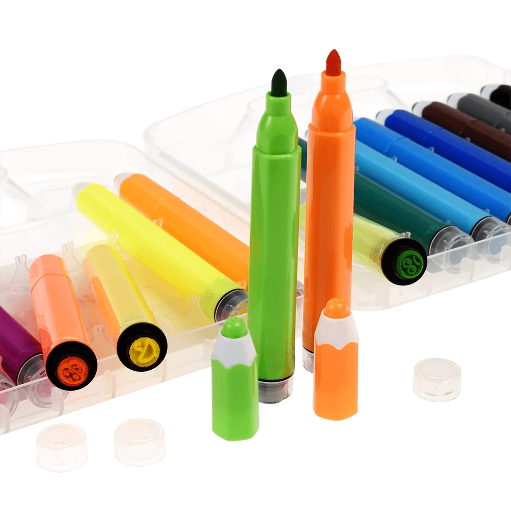 Cet ensemble de stylos Wild Wonders contient 18 stylos colorés, chacun avec un tampon unique à une extrémité et une pointe en feutre à l’autre. L’étui de transport pratique est parfait pour la créativité en déplacement.