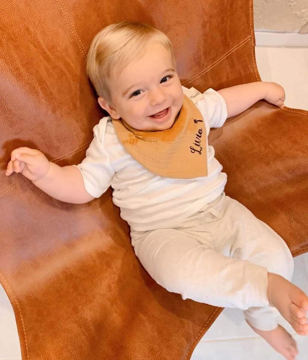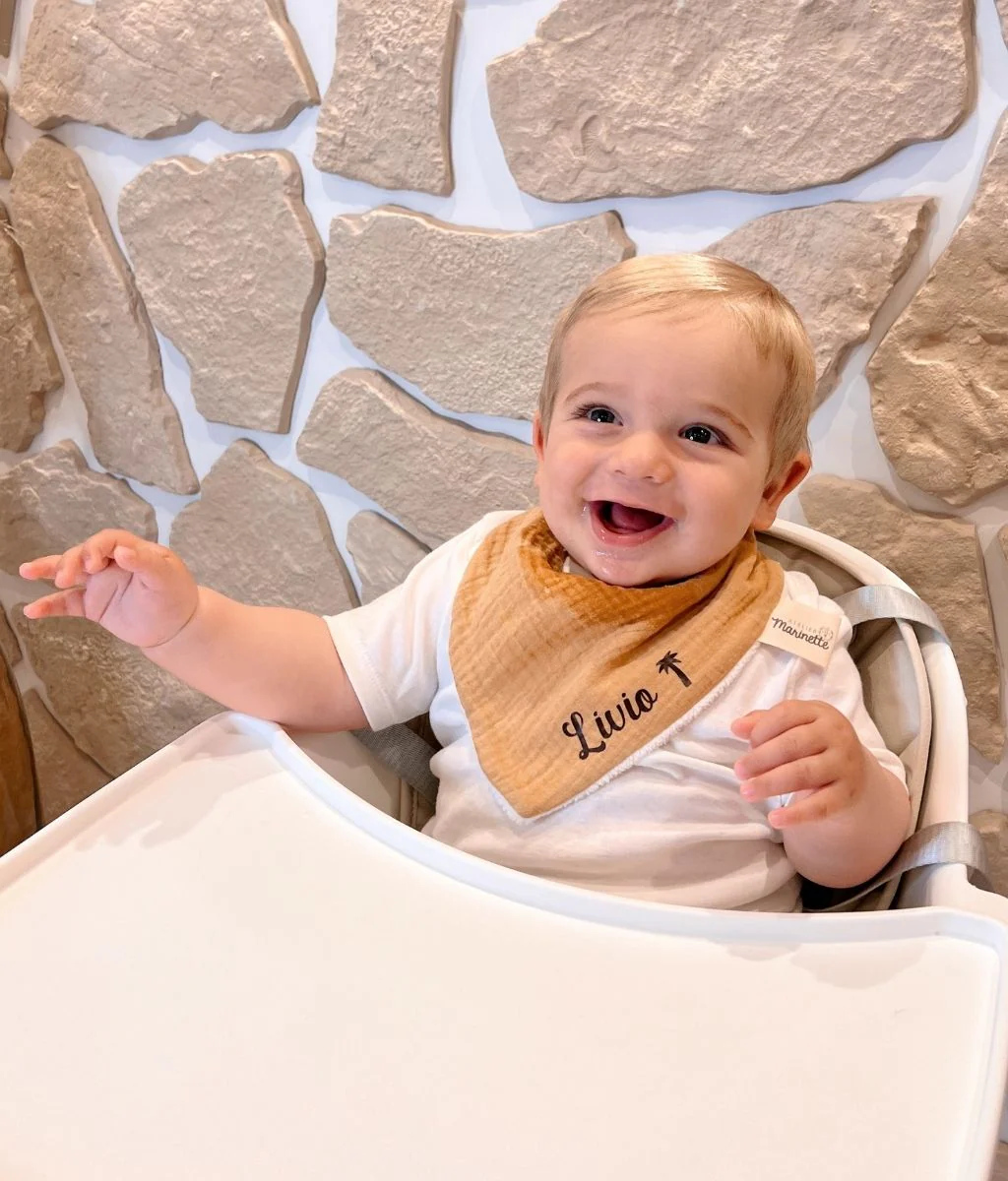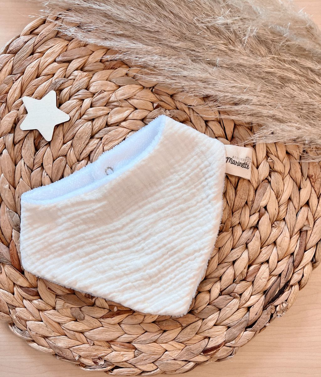 Ce bavoir bandana en gaze de coton et éponge en bambou OEKO-TEX® est idéal pour les premiers gazouillis de bébé. Un joli bandana inspiré de la tendance bohème qu’il pourra porter quotidiennement dans ses petites escapades.