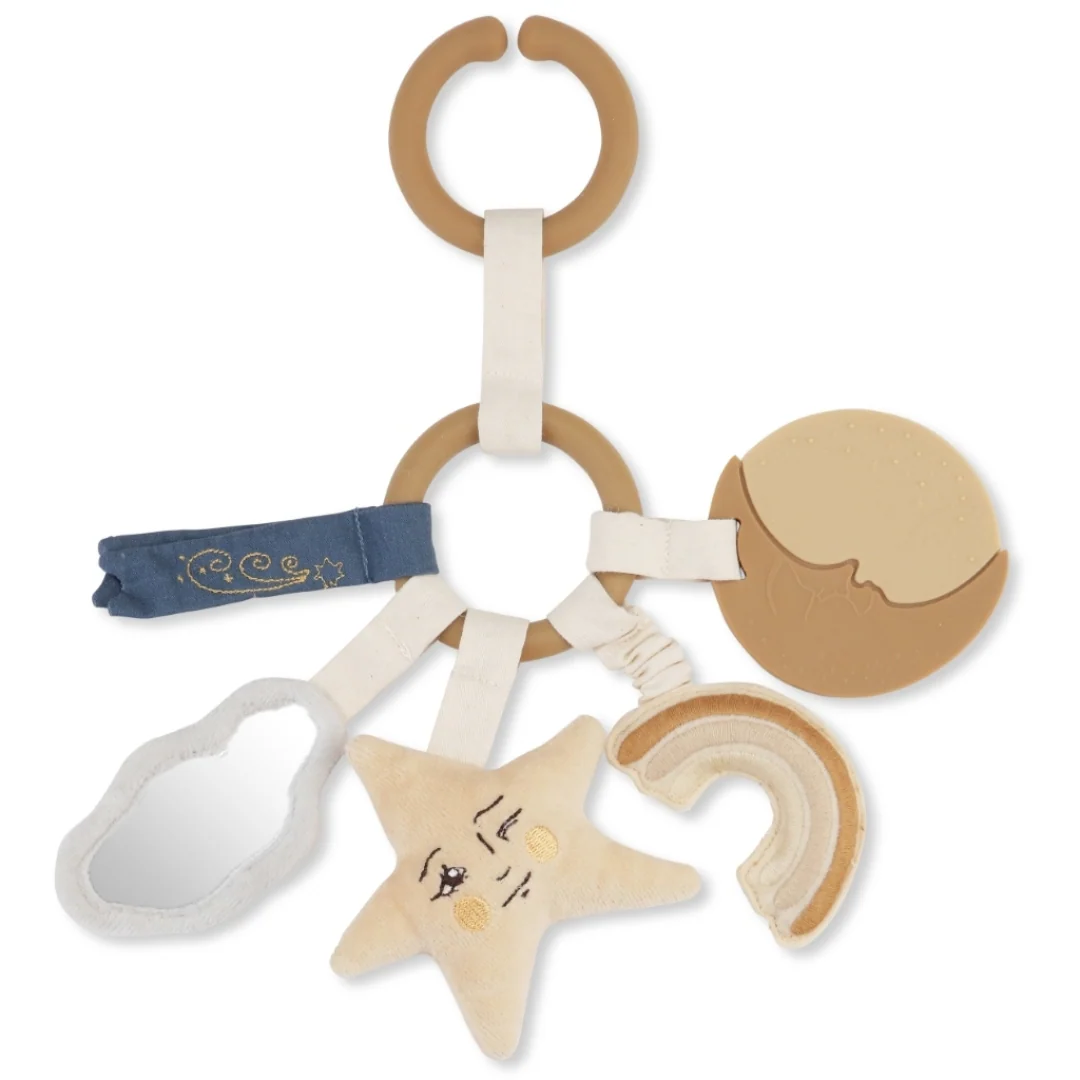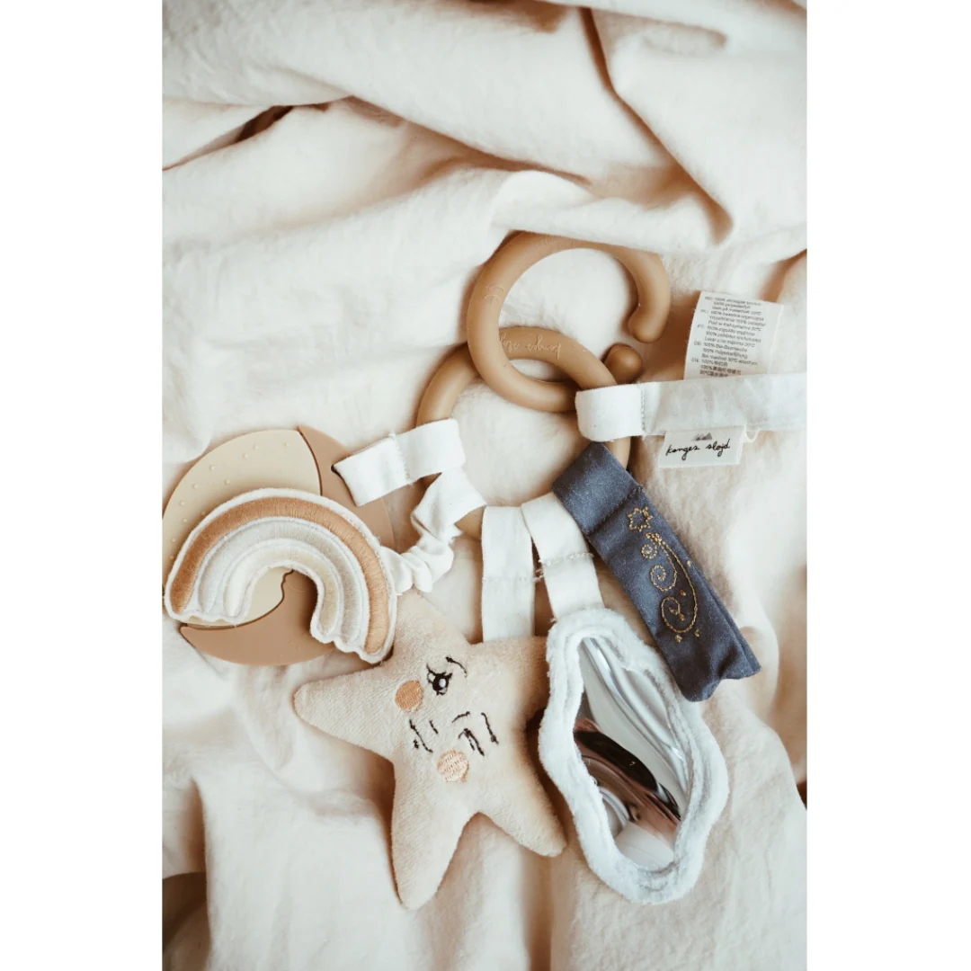 L’anneau d’activité Sky est idéal pour divertir et éveiller votre bébé ! Fabriqué en silicone, il comporte des éléments charmants : une lune souple à mâcher, des étiquettes ludiques, un miroir doux à motifs au dos, une étoile sonore secouée, et un arc-en-ciel croustillant pour stimuler les sens de votre tout-petit. Parfait dès la naissance, cet anneau offre une expérience sensorielle enrichissante pour accompagner le développement de votre bébé.