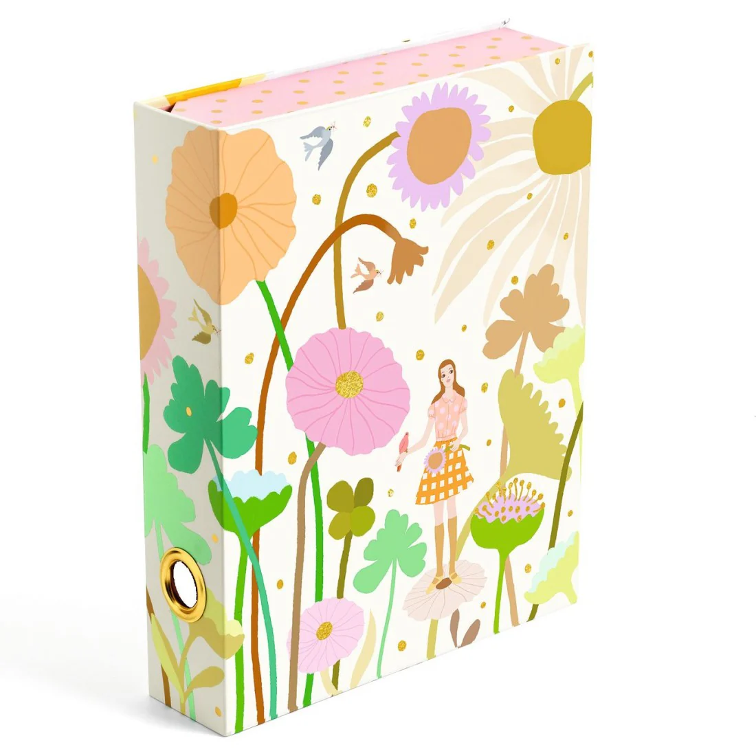 Conçue comme un livre qui s’ouvre pour révéler de nombreux compartiments de rangement, elle renferme un assortiment raffiné de papeterie : 2 carnets, 1 bloc-notes, 4 cartes, 4 enveloppes, 1 masking tape, 4 planches de stickers et 2 stylos gel.