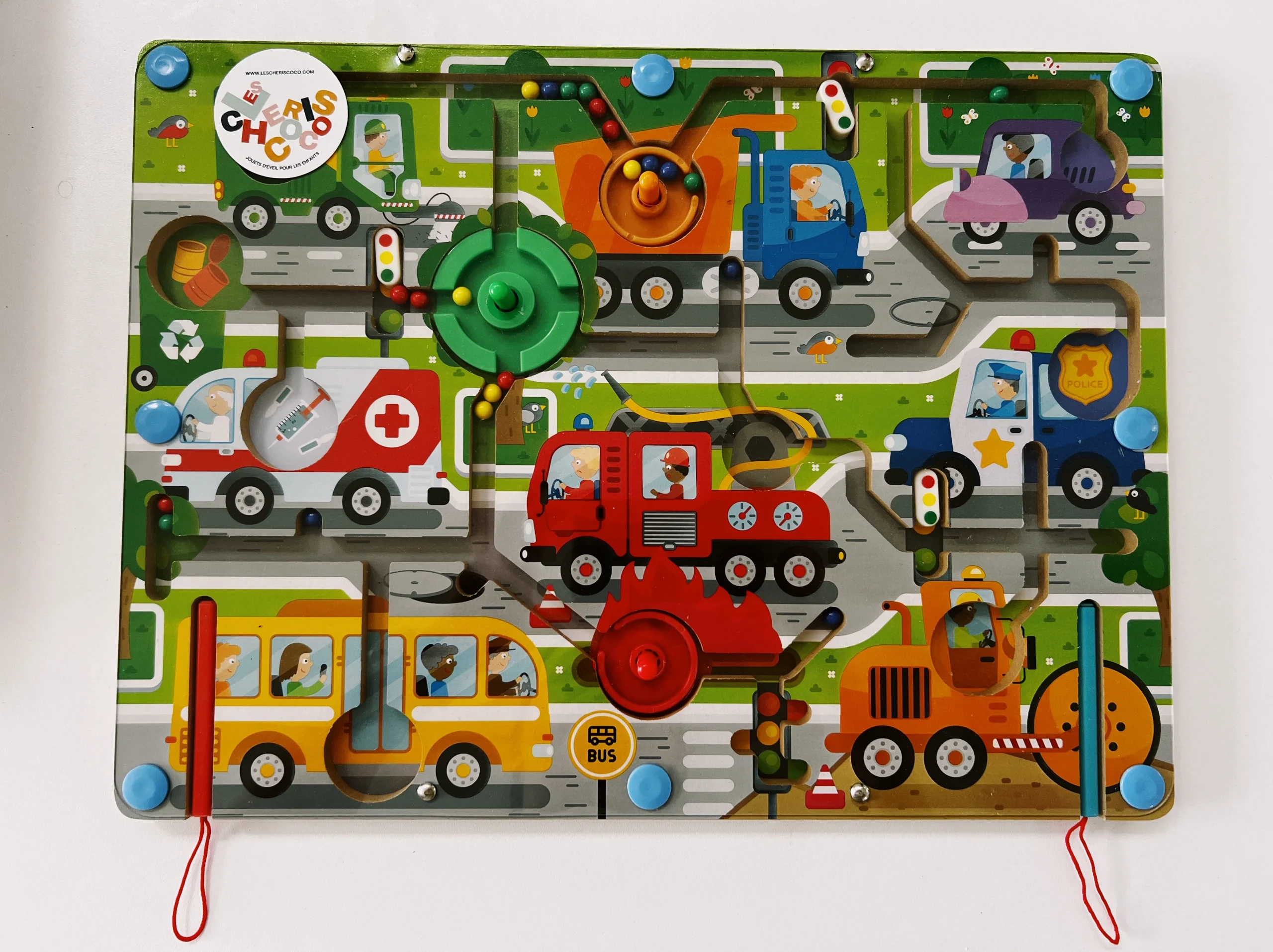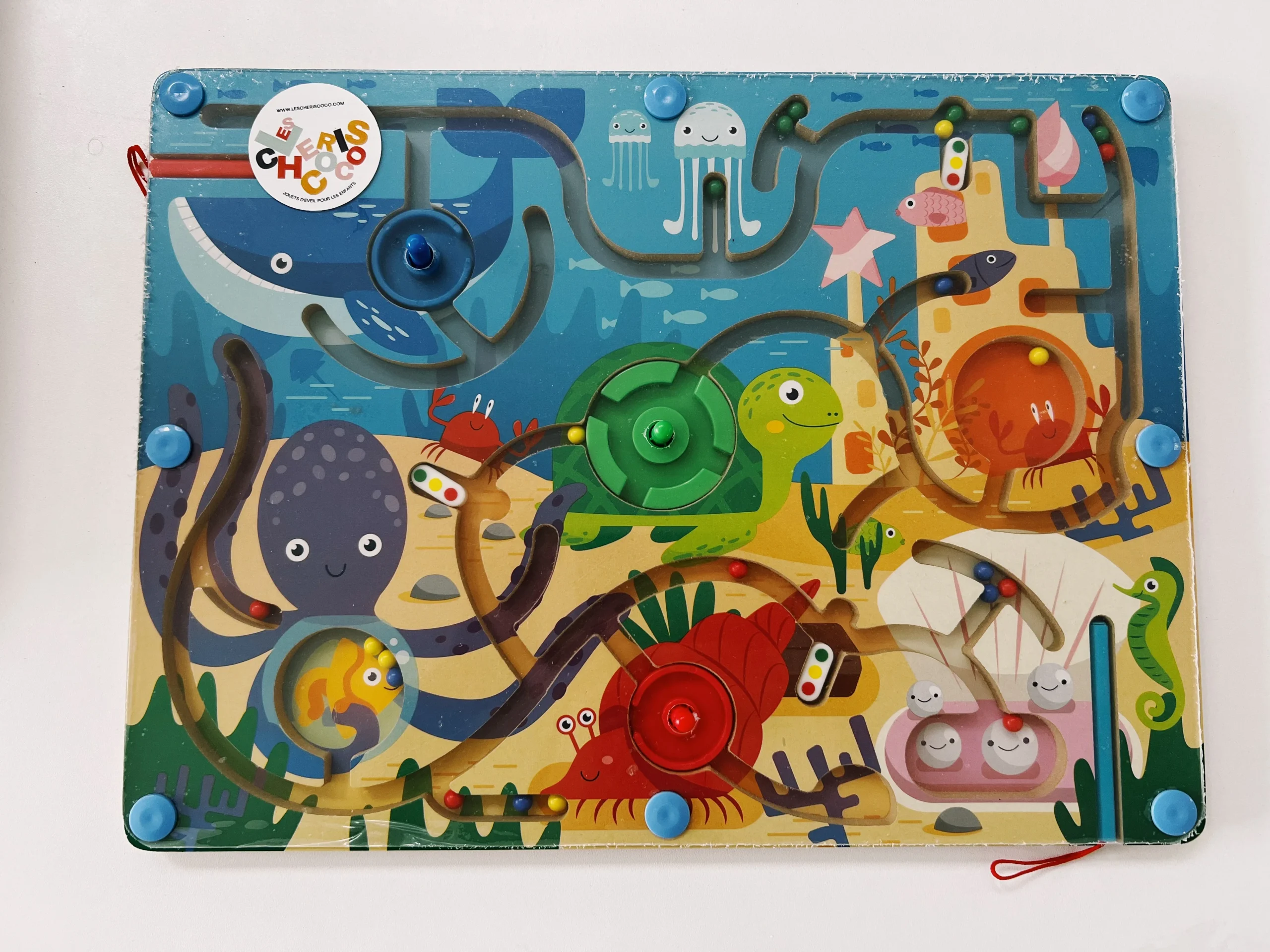 Un aimant, des billes, et tout un monde à explorer ! Ce labyrinthe en bois avec stylet magnétique invite les enfants à faire glisser les billes de couleur tout au long du parcours. À travers tunnels, virages et obstacles, ils exercent leur motricité fine, leur logique et leur concentration… sans même s’en rendre compte.