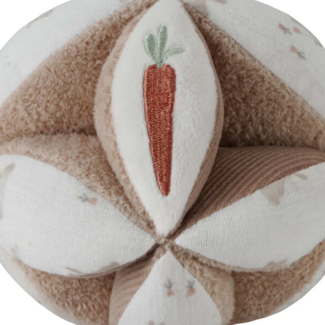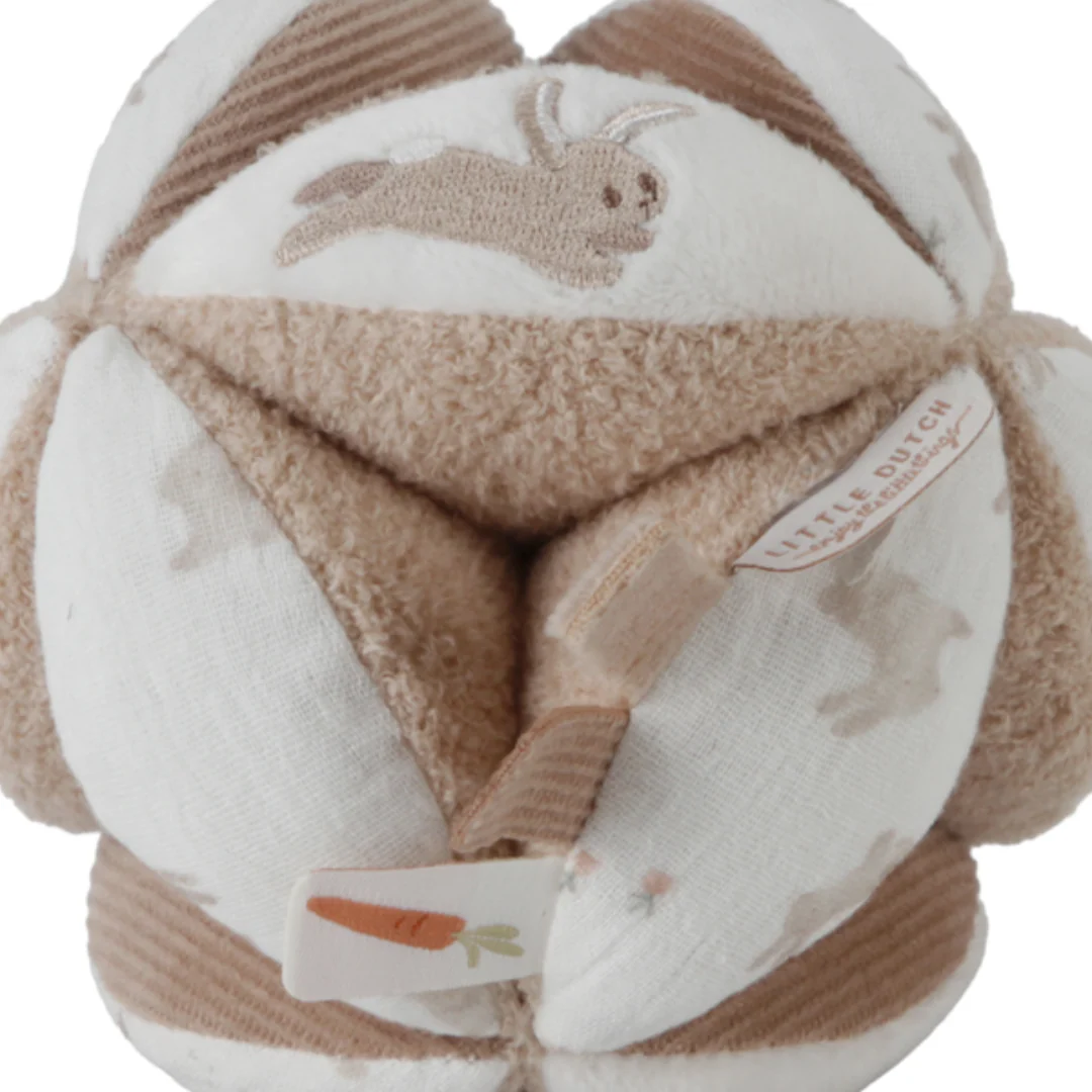 Découvrez cette balle de préhension captivante pour votre bébé. Sa forme intrigante constitue un défi stimulant. Les surfaces, ornées de textures et motifs variés, incitent à la saisie et à l’exploration. Facile à attraper pour les petites mains, elle récompense les efforts de votre bébé avec le son ludique d’une clochette. Arborant une adorable décoration baby bunny et des étiquettes amusantes, elle stimule les sens, favorise la prise en main et divertit votre bébé dans le parc.