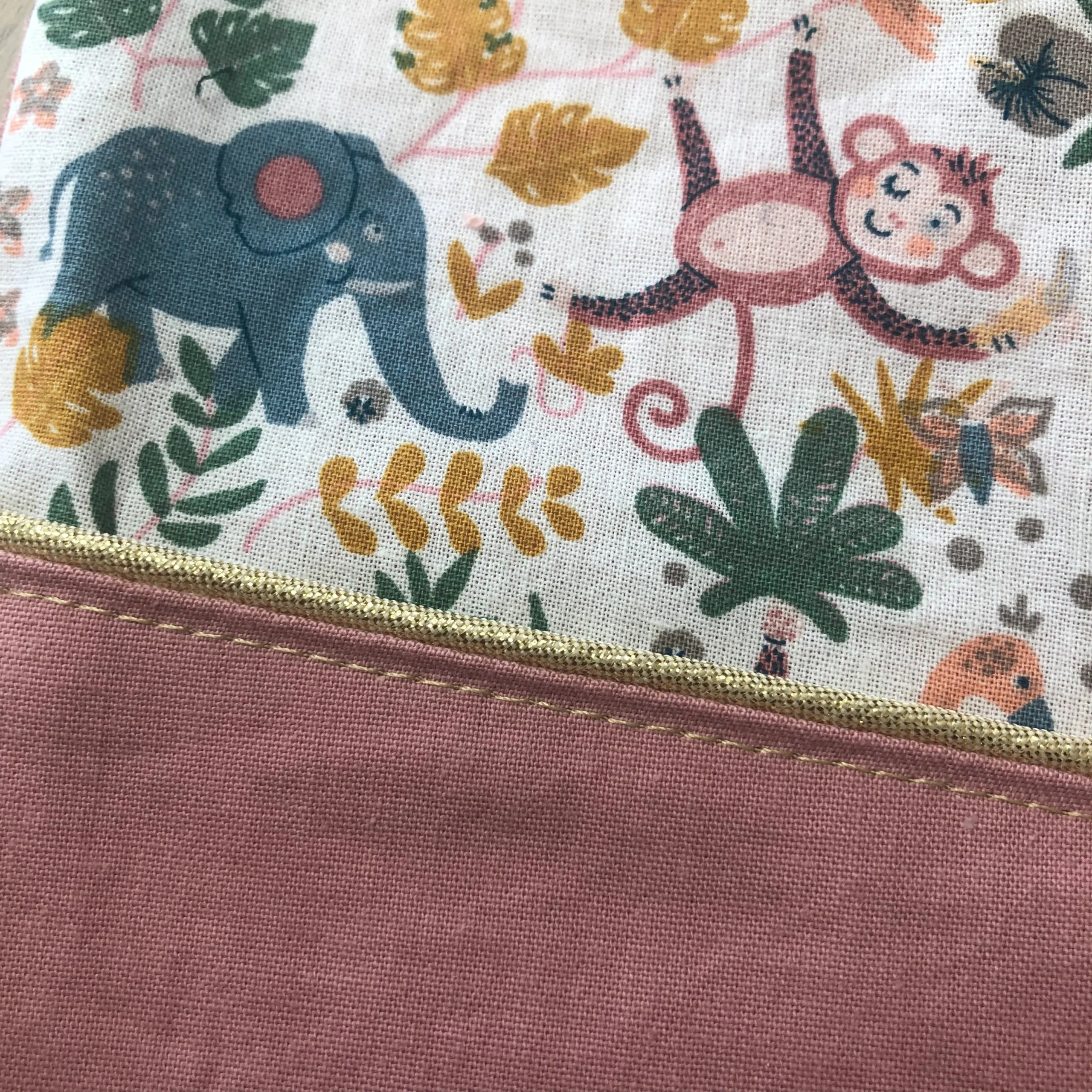 Bavoir naissance évolutif bi-colore personnalisable : – une partie haute thème animaux – une partie basse rose thé – un passepoil doré (liseré doré entre les deux tissus) Le bavoir est doté d’une face en micro-éponge rose 100% coton bio et se ferme grâce à un bouton pression (double position) qui permet de s’adapter au […]