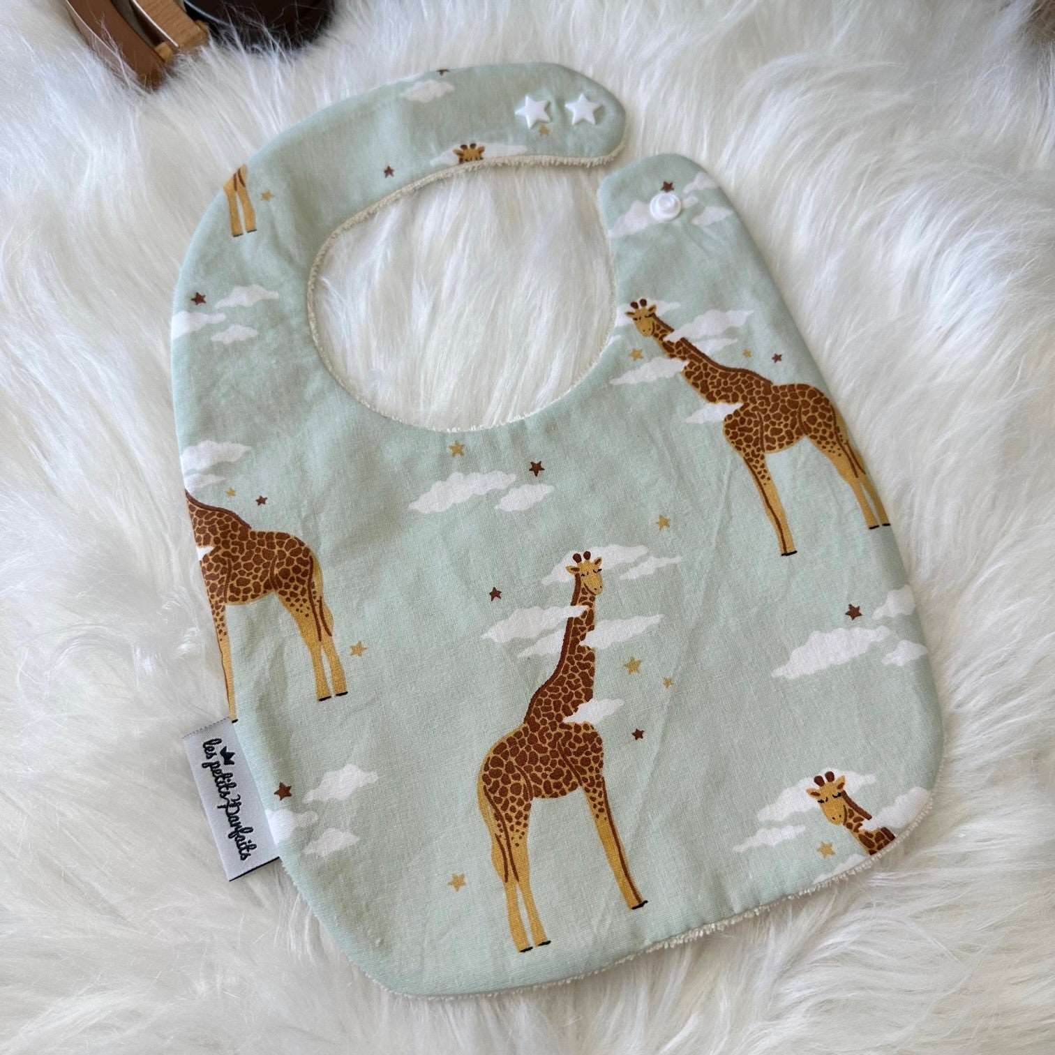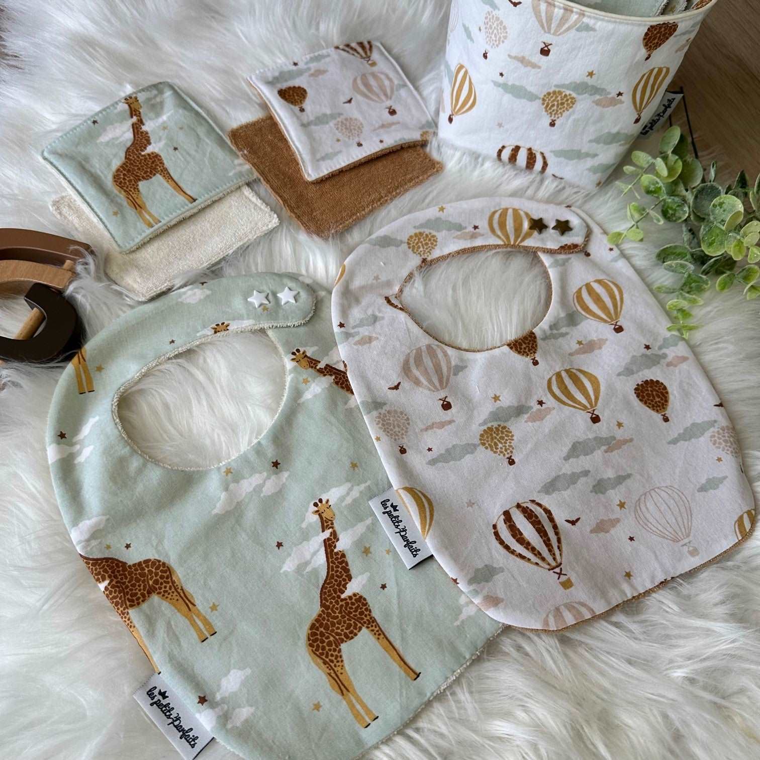 Bavoirs Pression Motifs Girafes et Montgolfières étoilées