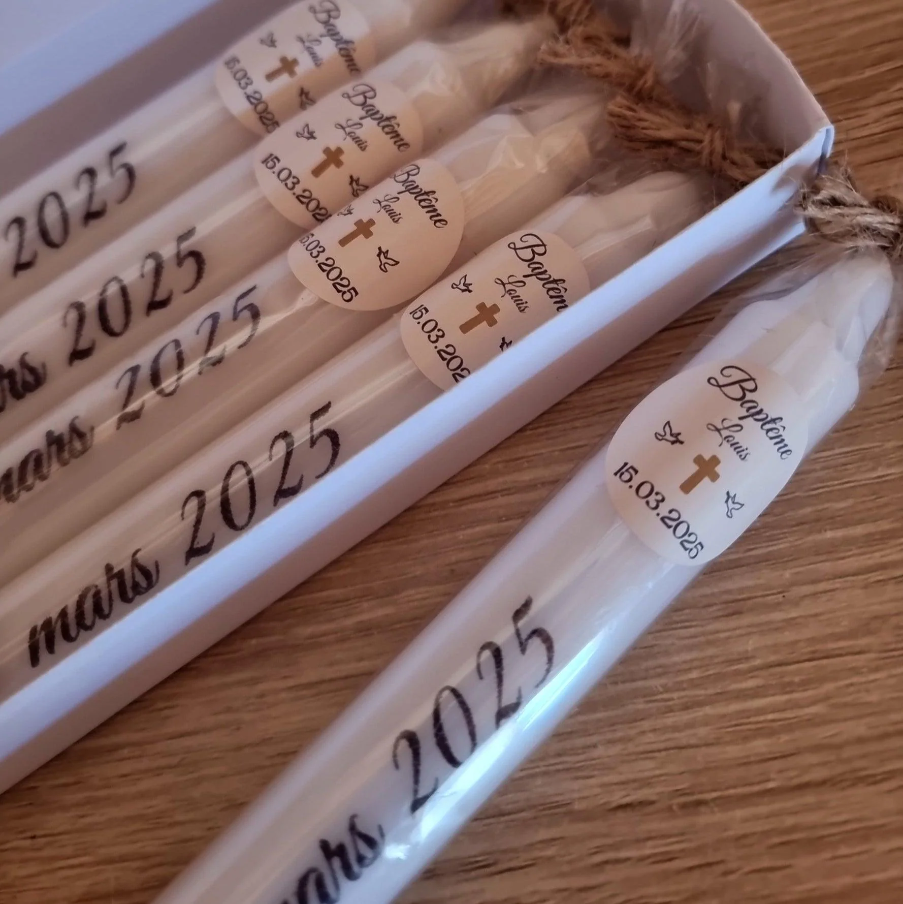 Un doux symbole de lumière et de pureté, le cierge accompagne ce jour unique avec élégance et émotion. Pour rendre ce moment encore plus spécial, nous avons imaginé un cierge raffiné, personnalisé avec le prénom de l’enfant et la date de son baptême.