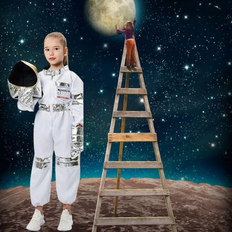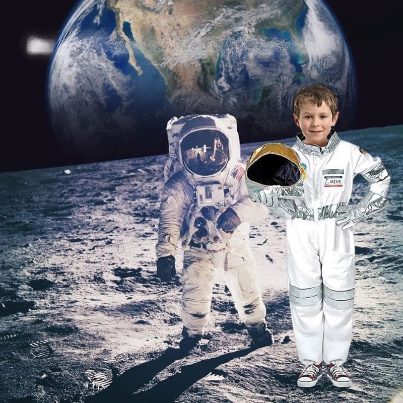 Déguisement enfant qui stimule l'imaginaire, téléportez-vous sur la lune avec l'esprit de Louis Armstrong.