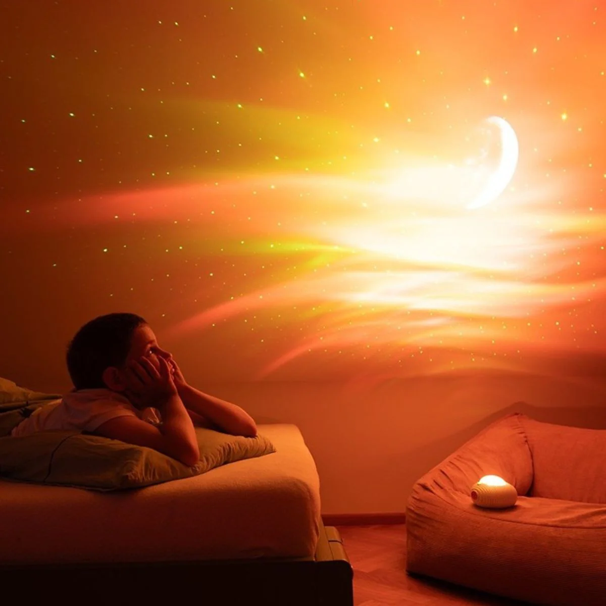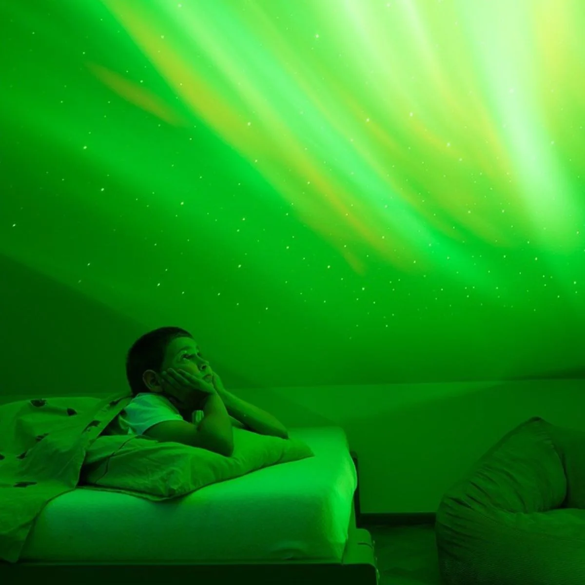 - Projection cosmique RGBW: Le projecteur offre une variété d’effets lumineux avec la possibilité de projeter des motifs bleus, verts, rouges et blancs, créant ainsi un effet galactique unique.