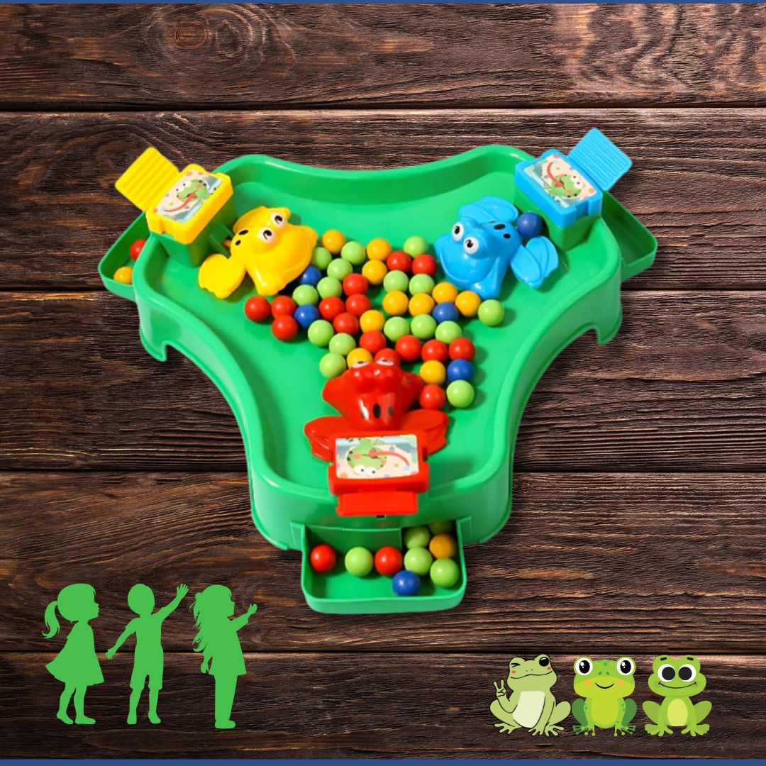 La Grenouille Gourmande™ est un des premiers jeux de société enfant à présenter à vos petits de 3-6ans . Elle plonge les enfants dans un monde où les grenouilles affamées sortent de l’étang à la recherche de leur repas.