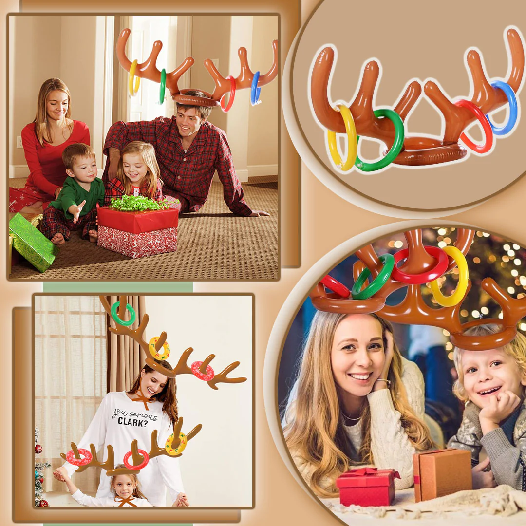 Pas besoin d’être un expert en jeux pour jouer, il suffit de mettre le chapeau et de commencer à s’amuser ! Les règles du jeu sont simples : lancez et attrapez les anneaux gonflés sur le chapeau de bois de renne et marquez des points. Le premier à atteindre 300-500 points a remporté la partie