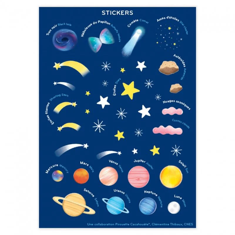 Une activité créative sans colle ni ciseaux, créée en partenariat avec le CNES (Centre National d’Études Spatiales) et l’illustratrice Clémentine Thibaux.