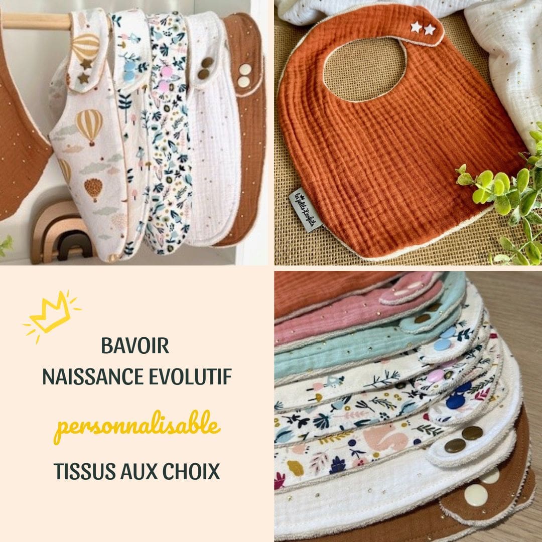 Créez un bavoir à personnaliser pour votre bébé, fait main dans mon atelier. Confortable, pratique et joli, il protège les vêtements tout en apportant une touche unique à chaque repas ✨.