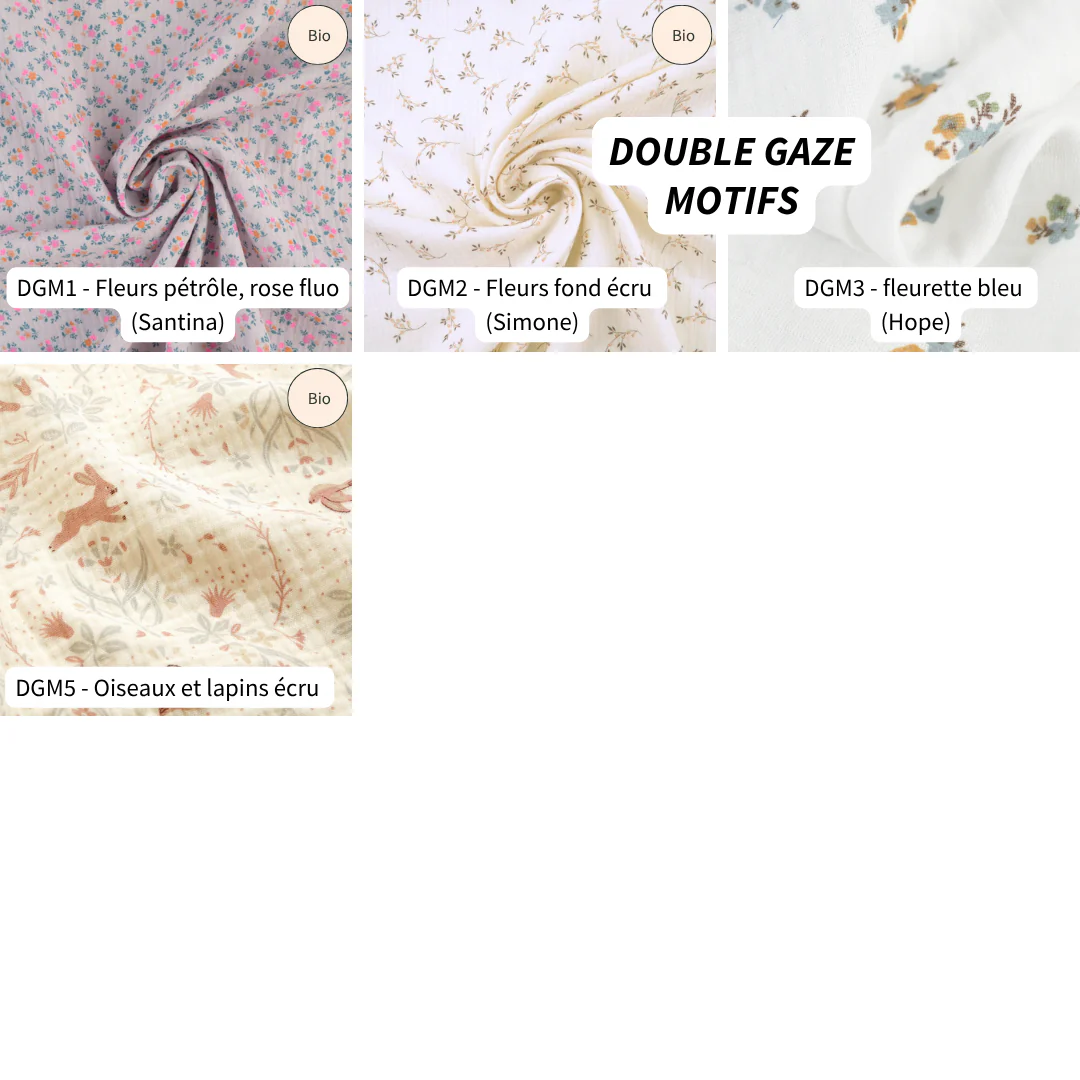 - Sélectionnez le tissu imprimé (coton ou double gaze de coton)