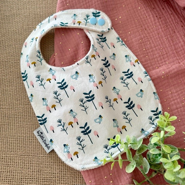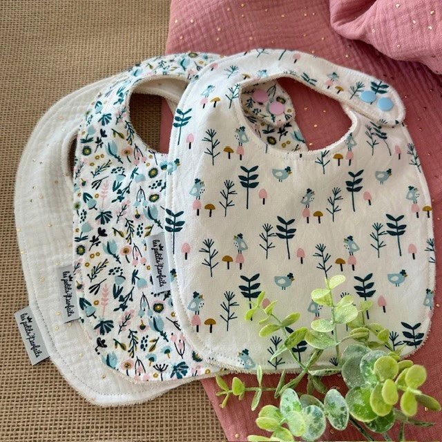 – un bavoir motifs petits oiseaux et branches