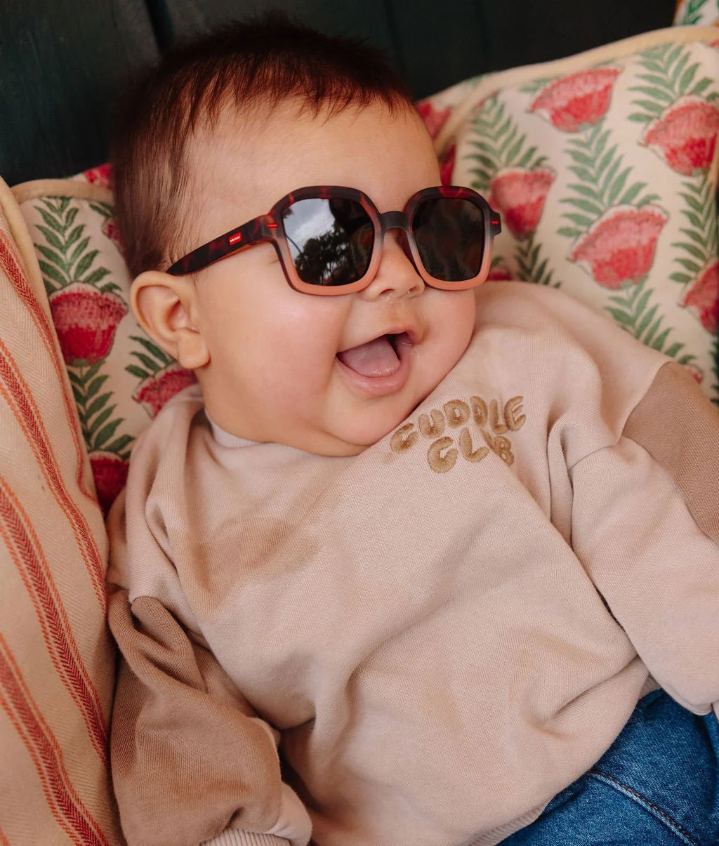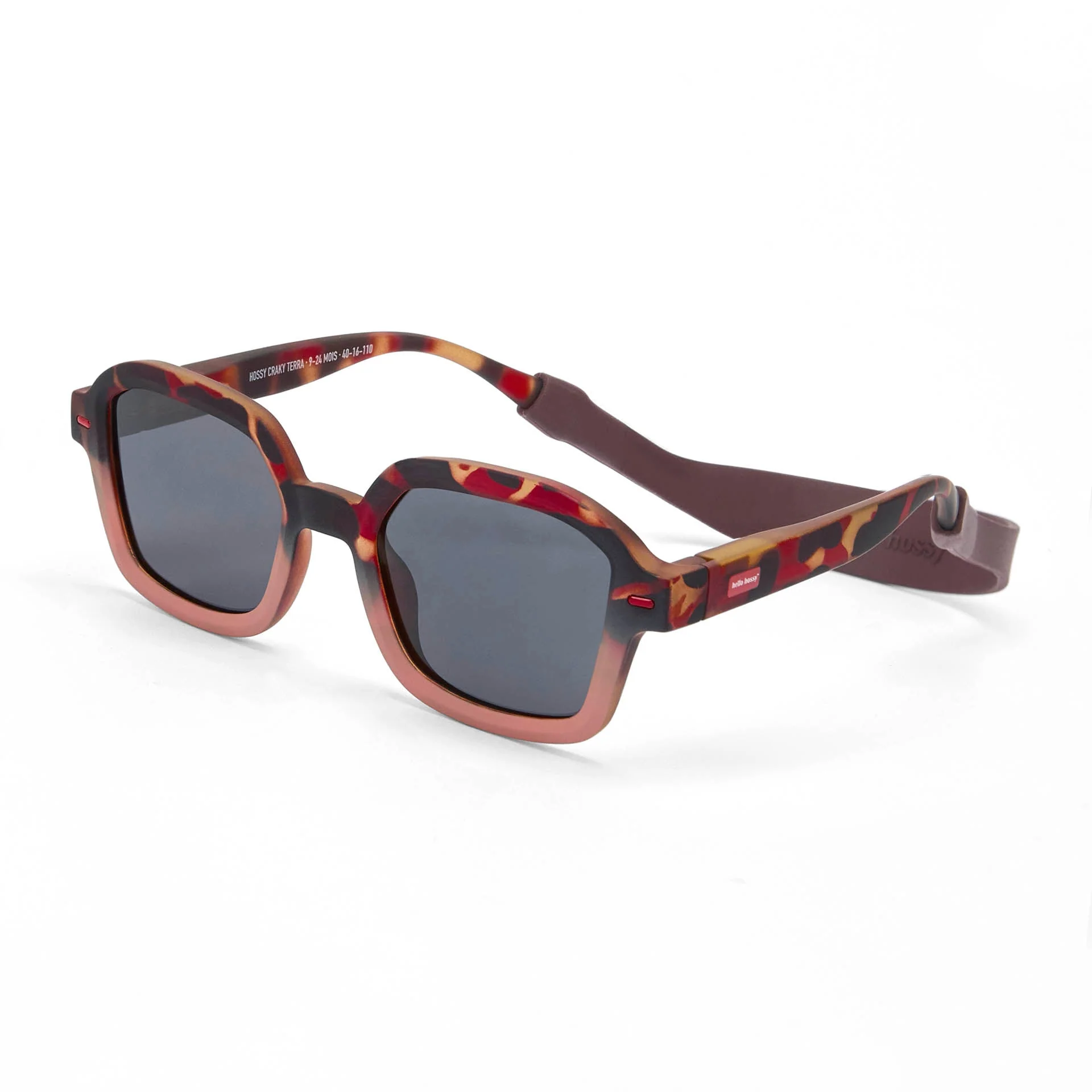 Les Lunettes de soleil pour bébés et enfants, Hossy Craky Terra, offrent une protection optimale : verres polarisés, catégorie 3, UV400. Lunettes design, confortables, bicolores écaille-terracotta. Attache bébé fournie pour la taille bébé (9-24 mois).