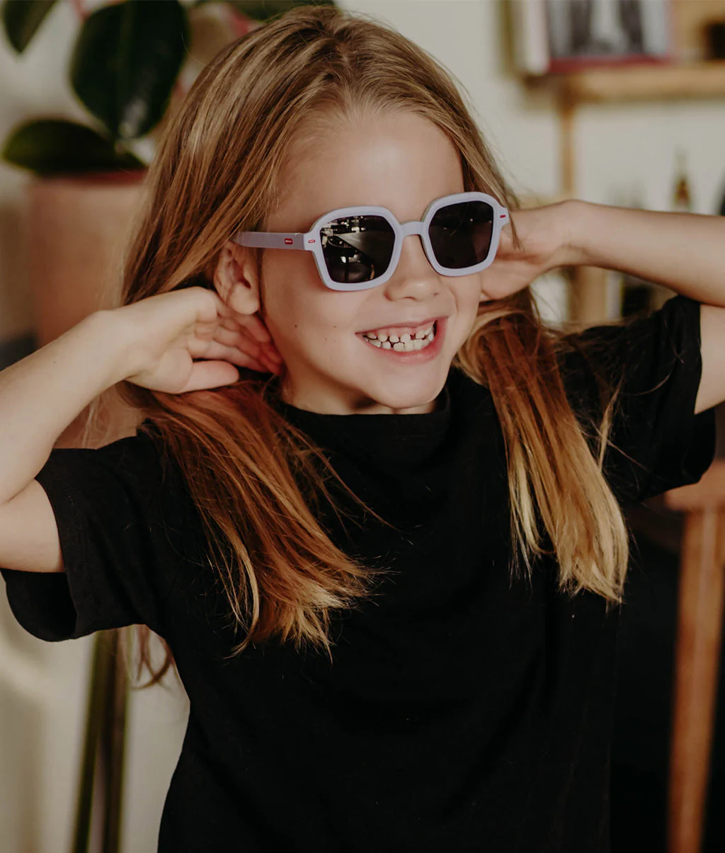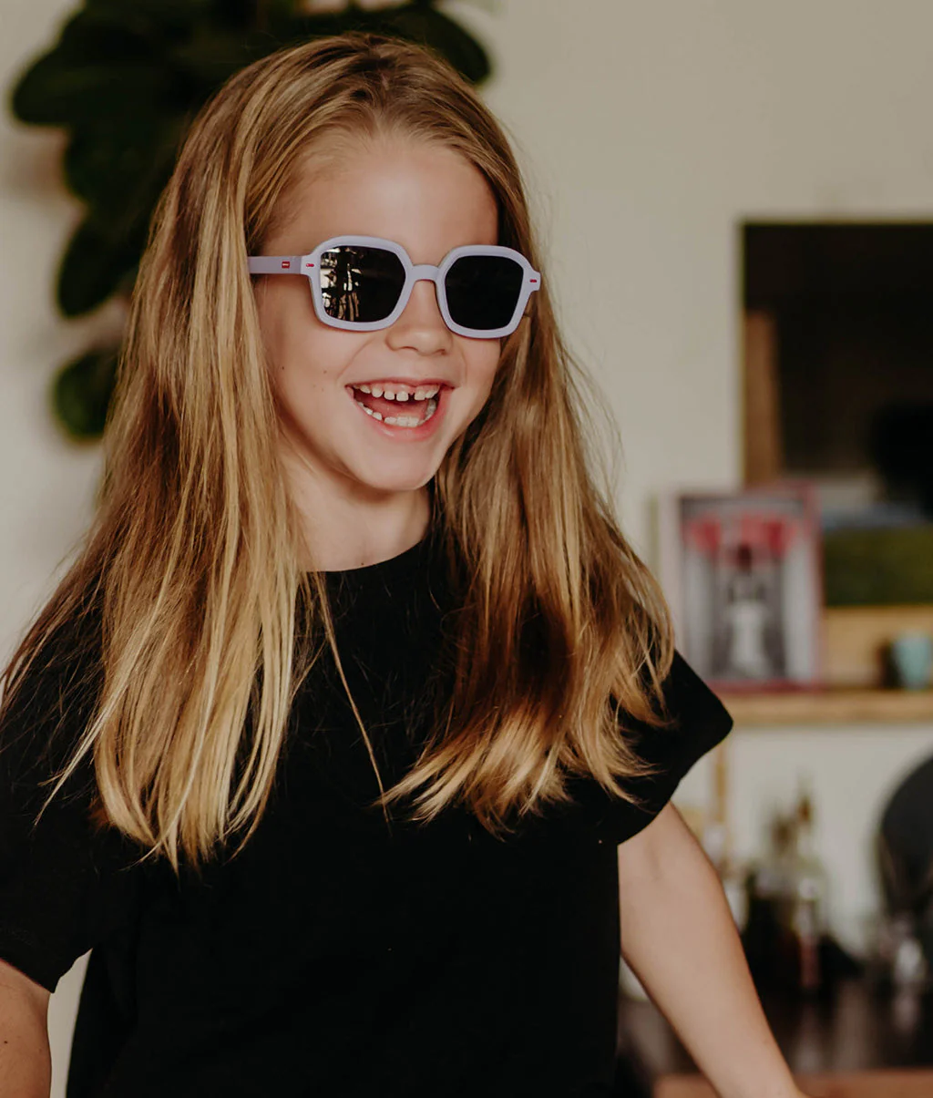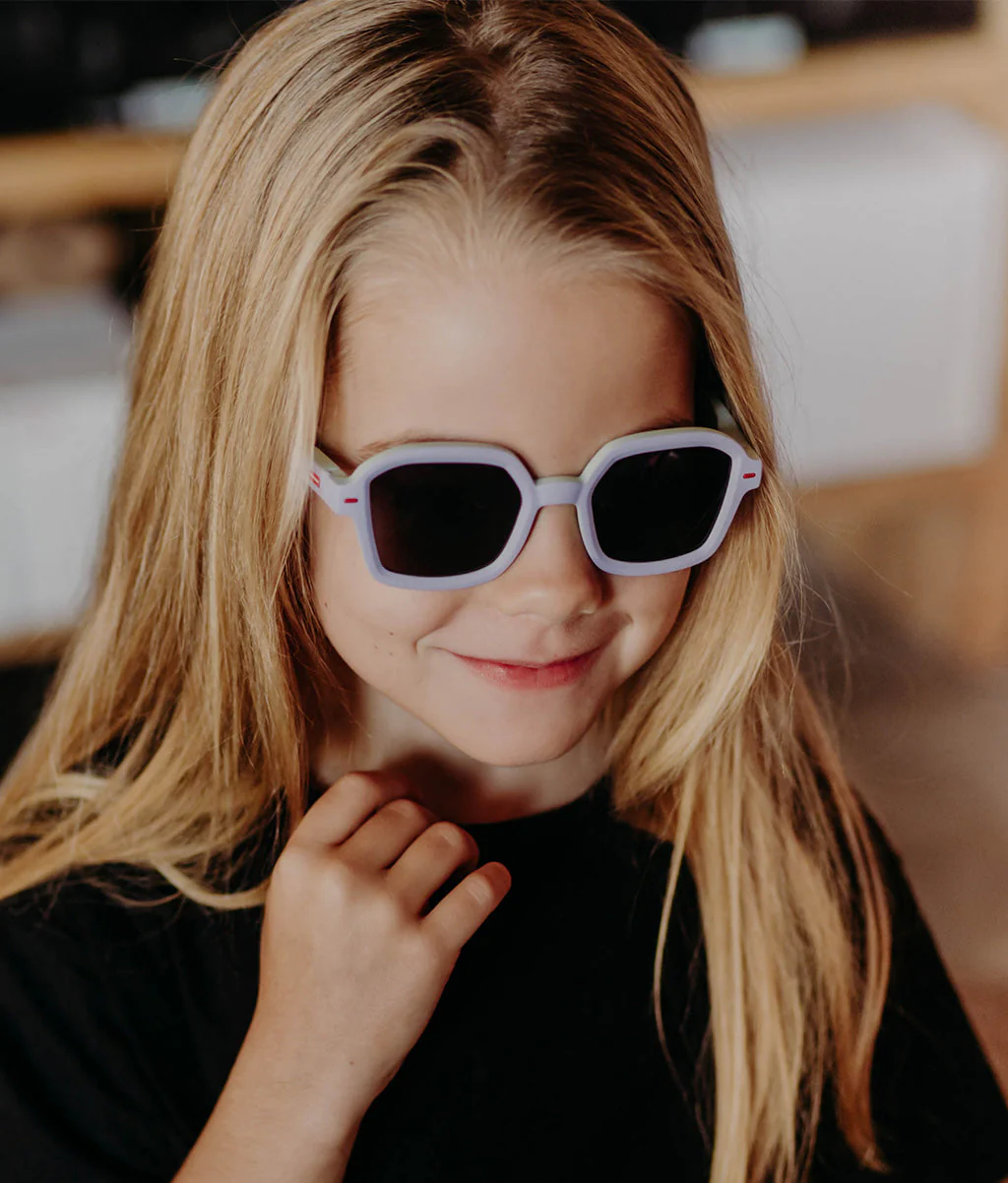 Les Lunettes de soleil pour enfants Hossy Stella sont des lunettes de soleil fabriquées à partir de matières recyclées. Ce sont des lunettes de soleil pour enfants éco-responsables. Proposées dès 9 mois, les branches sont facilement ajustables chez un opticien. Chaque détail a été soigné : protection UV400, verres Catégorie 3, charnières à ressort.