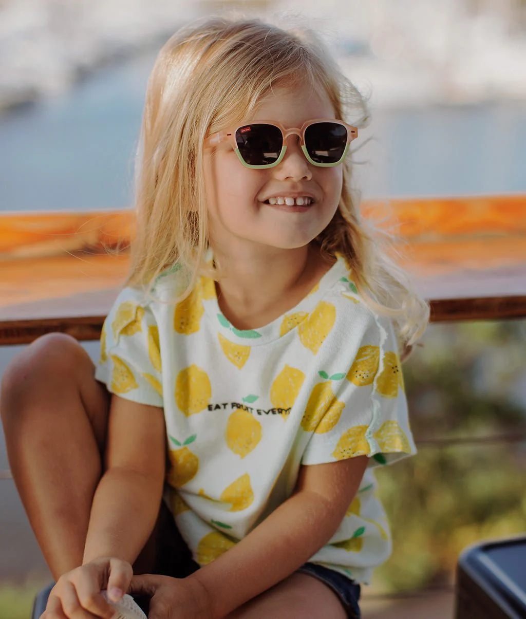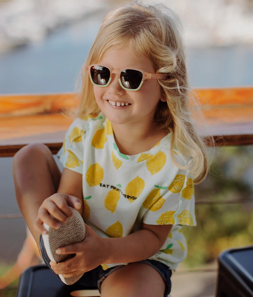 Les Lunettes de soleil pour enfants Mini Mia ne vont pas laisser les kids indifférents. Son duo de couleurs en font un modèle de caractère. Originales, fraîches et modernes, les enfants vont adorer les porter (et faire des jaloux chez les adultes). Avec Murielle, on a pris le temps de dessiner et développer un style de lunettes singulier, qui nous ressemble – afin de ravir les bouilles des enfants. Profitez-en !