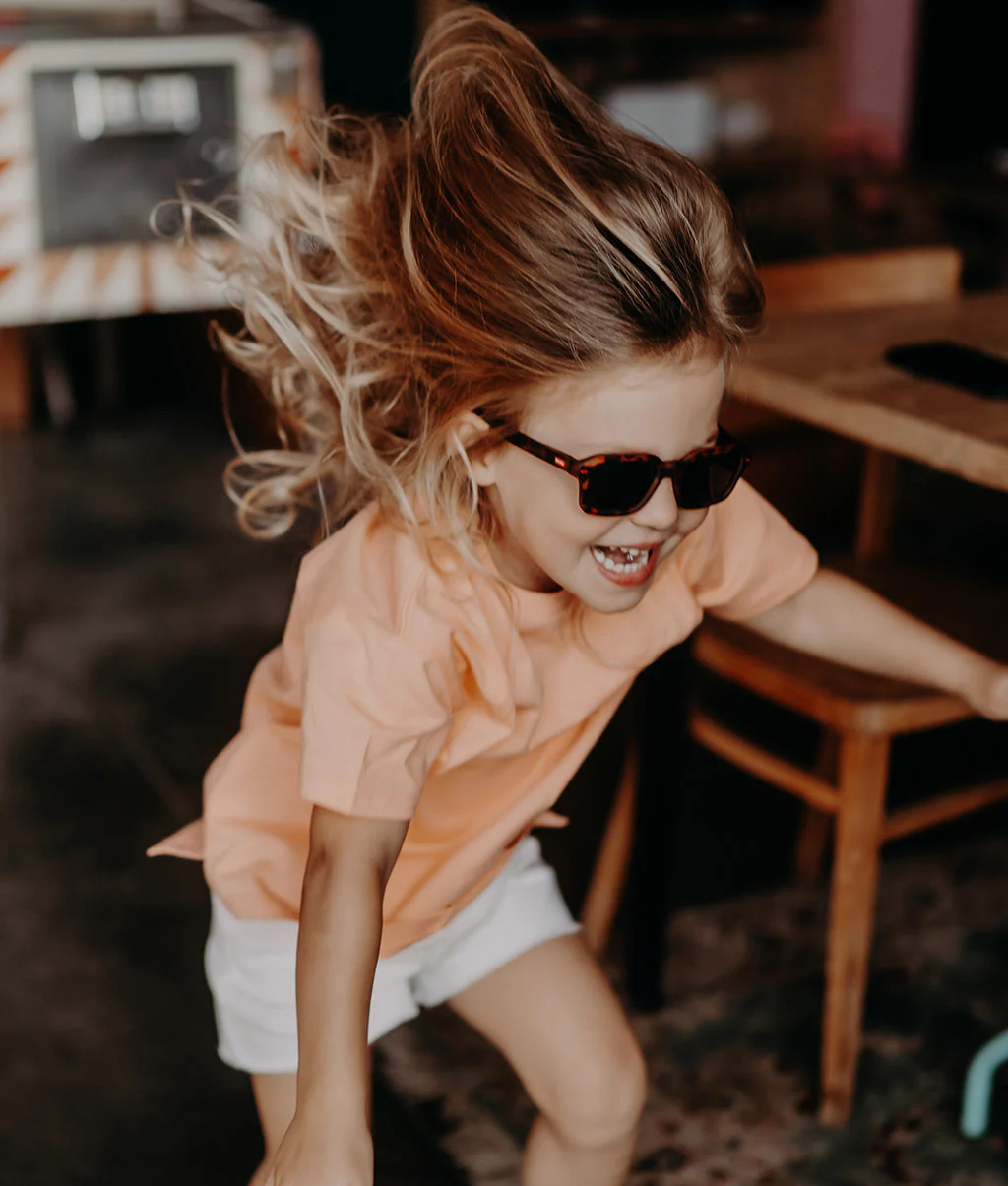 Les Lunettes de soleil pour enfants Morzi Craky sont incroyables ! On adore la finition en écaille. On adore cette forme inédite chez les enfants, qui leur donne du look et du caractère. Les parents vont être jaloux. Protection idéale : UV400, verres Catégorie 3, charnières à ressort. Dès 2 ans.