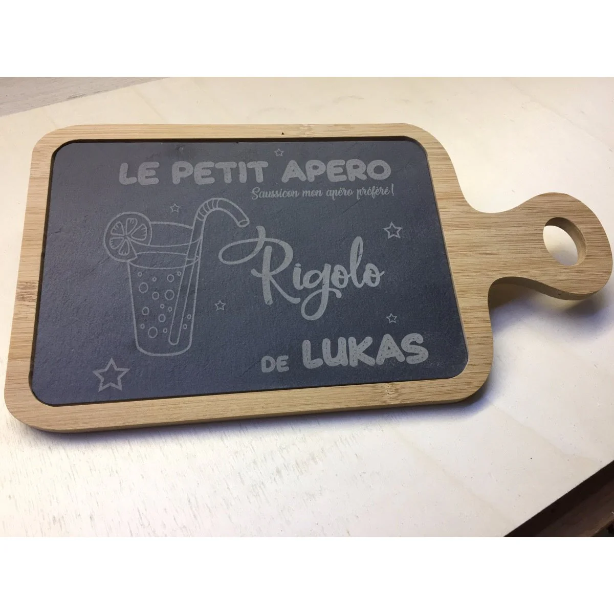 Avec la gravure personnalisée, la planche à découper en bois et ardoise devient une véritable pièce unique de votre maison. Offrez-la à votre père, parrain, marraine, tonton, tata, frère, soeur, cousin, amies, maître, maîtresse, maman, filles, garçons .