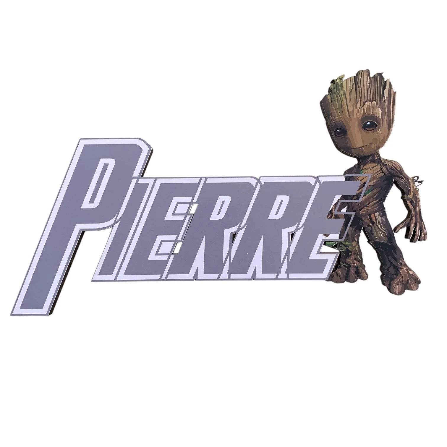 I am Groot ! Embarquez pour l’aventure spatiale avec notre plaque de porte Gardien de la Galaxie personnalisée. Groot, Star-Lord et toute l’équipe des Gardiens sont prêts à protéger la chambre avec le prénom de votre petit héros galactique !