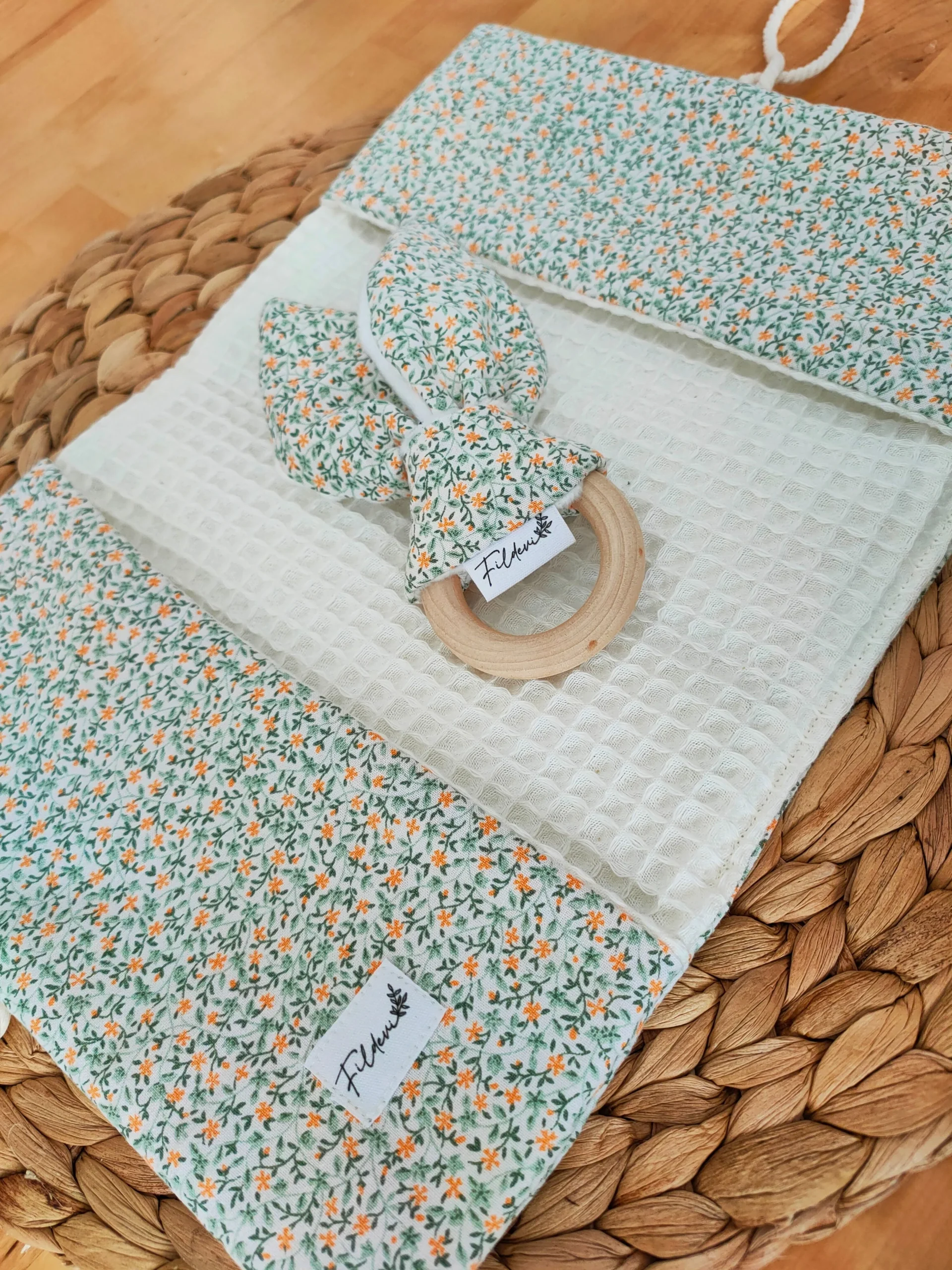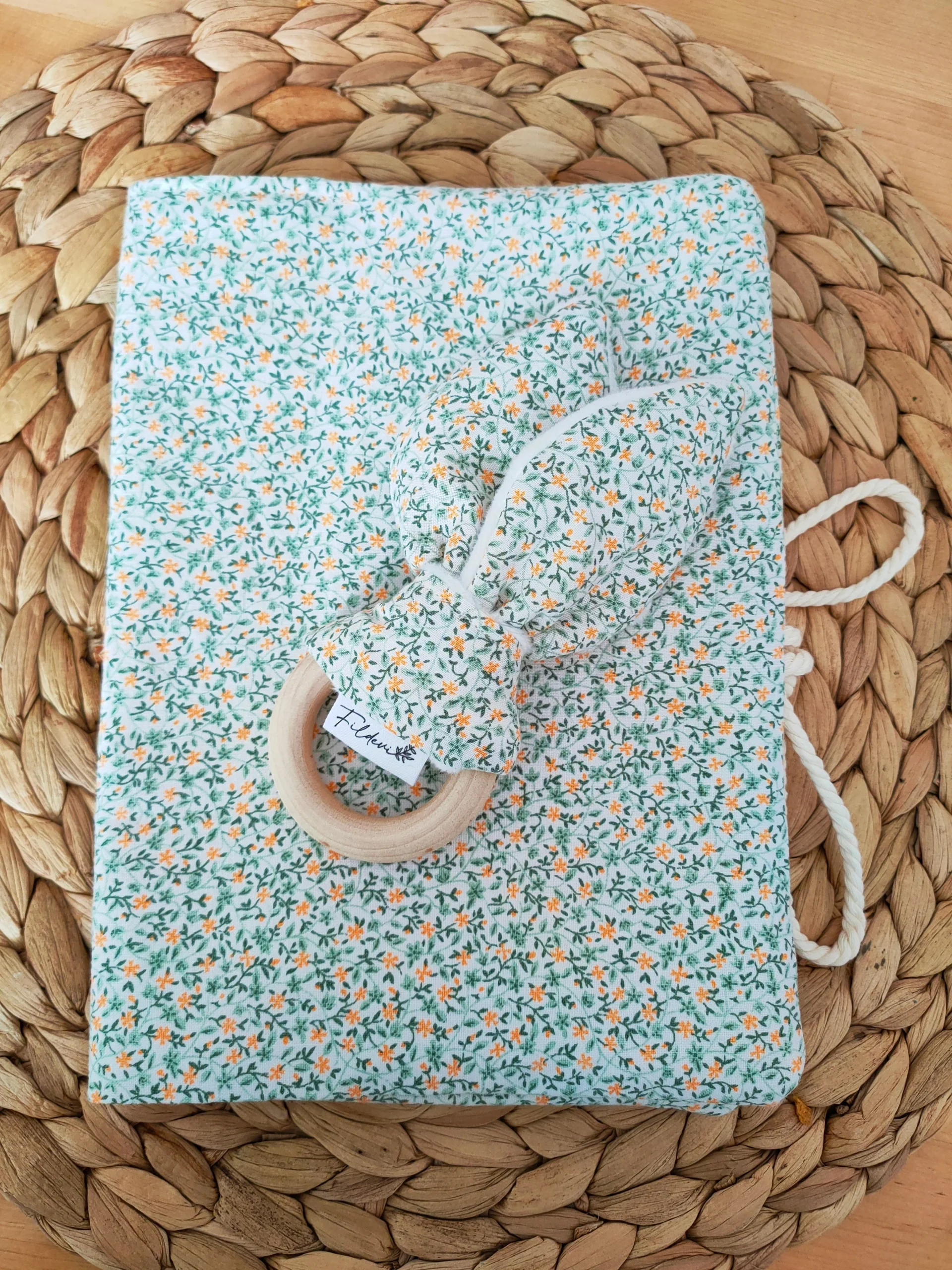 A la recherche d’un cadeau de naissance joli et utile à la fois ? Découvrez ce protège carnet de santé fait main fleuri vert et moutarde !