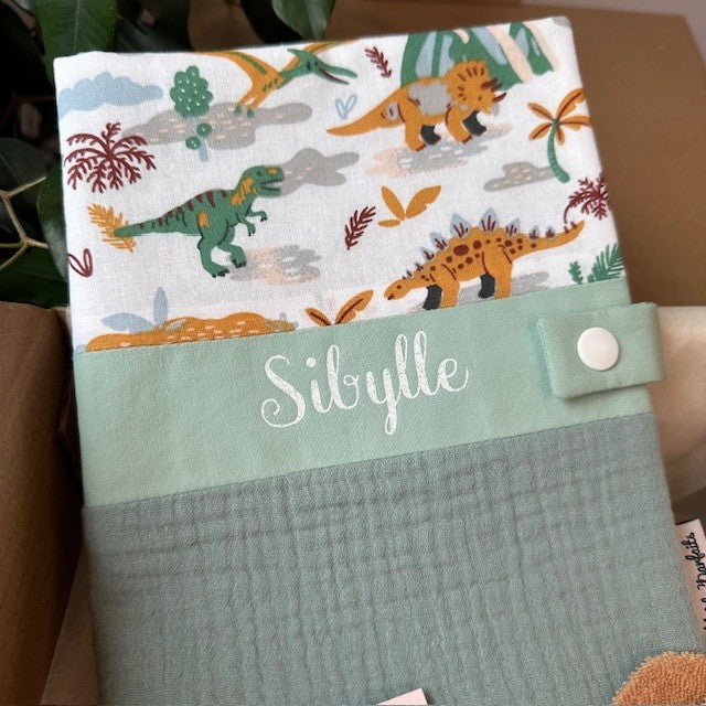 Protège carnet de santé thème double gaze dinosaures (avec prénom)