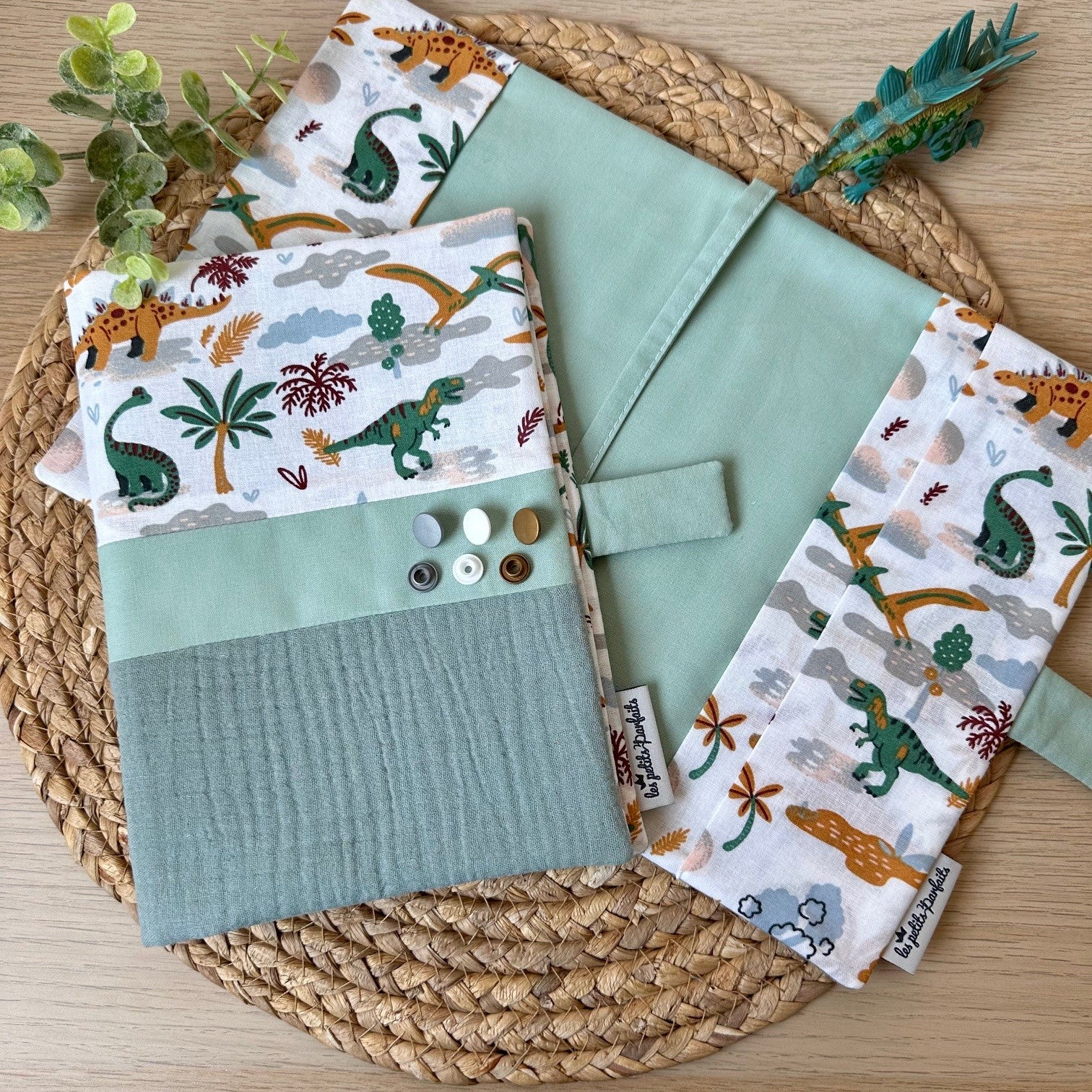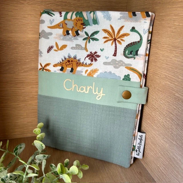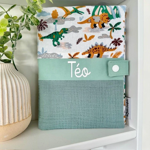 Soyez le premier à laisser votre avis sur “Protège carnet de santé thème double gaze dinosaures (avec prénom)”