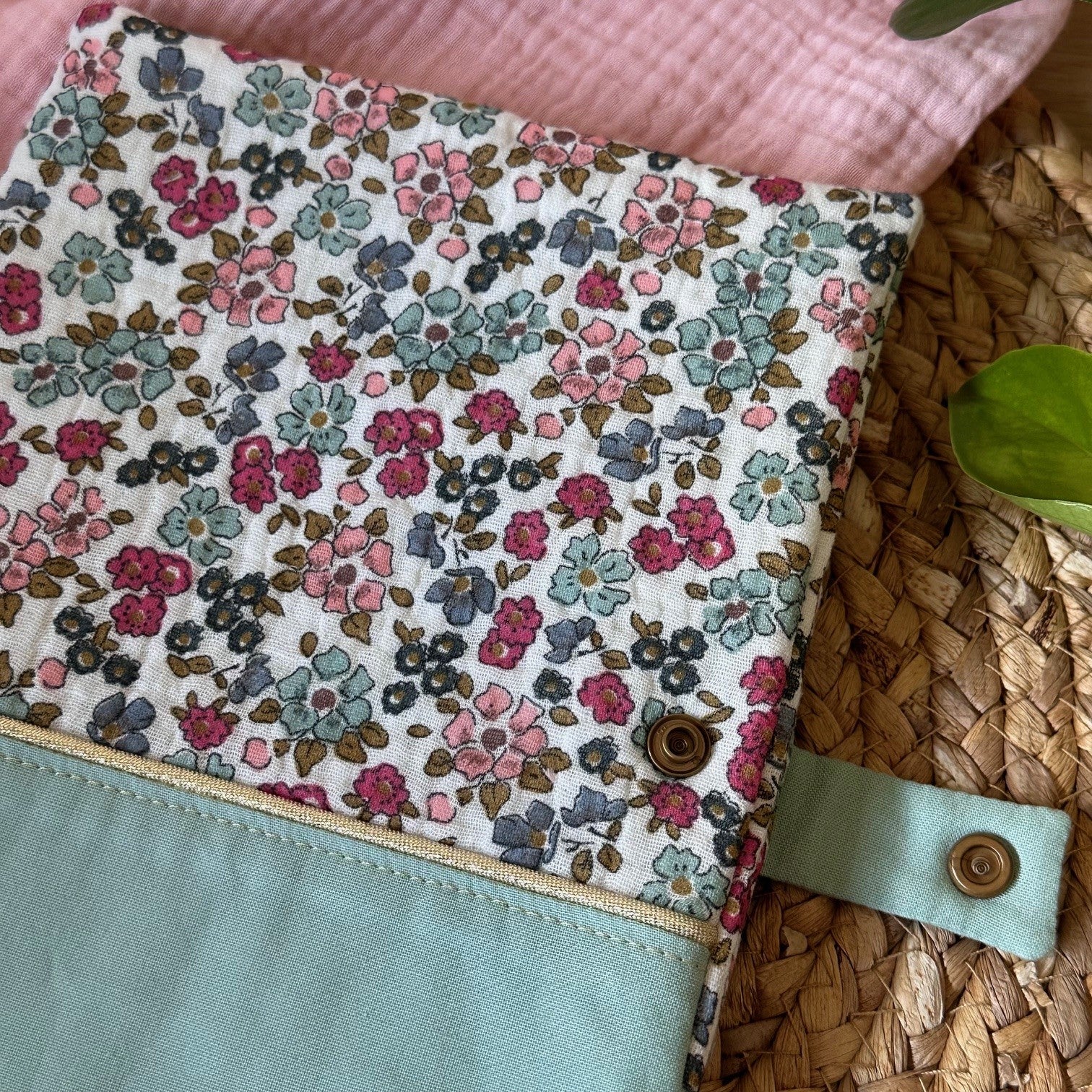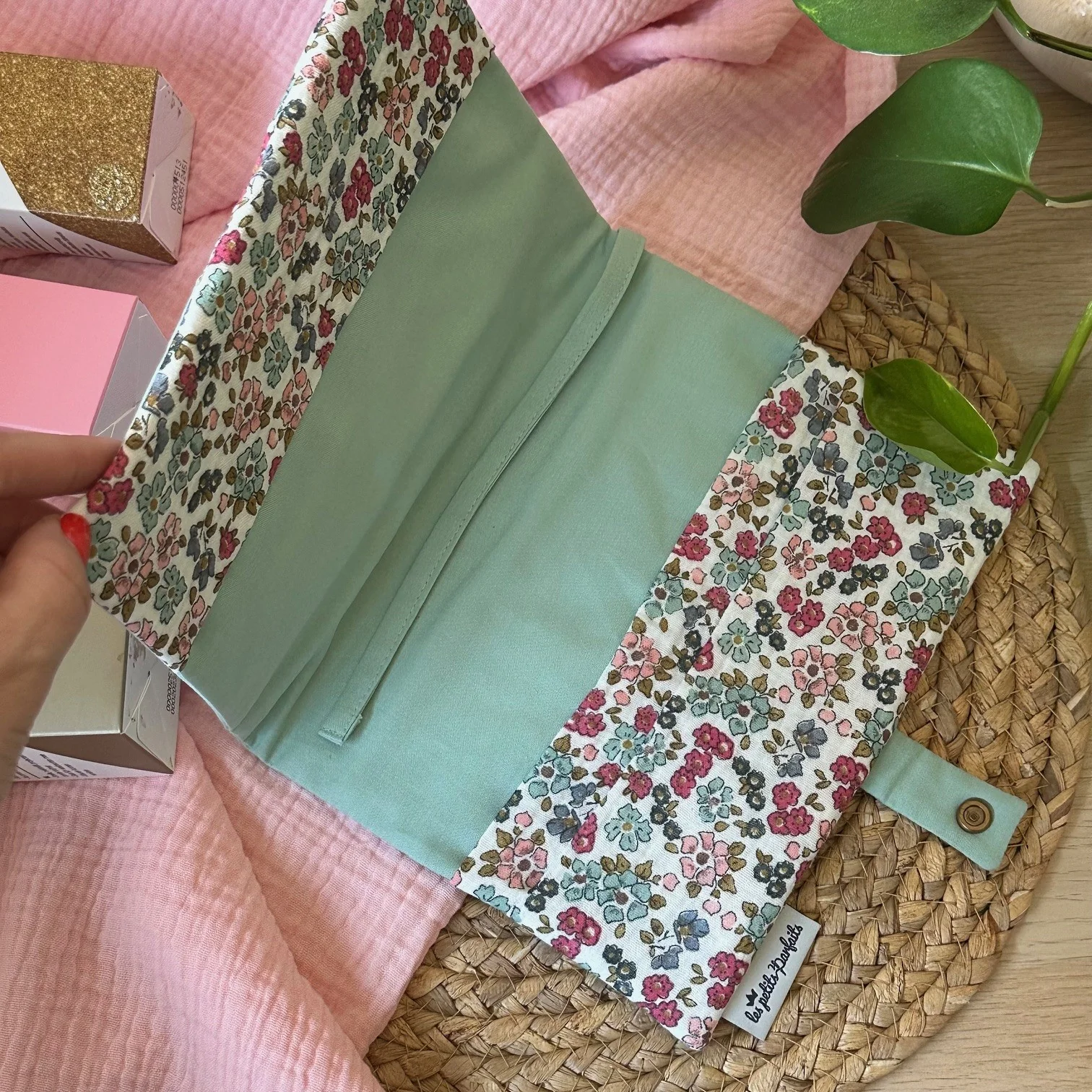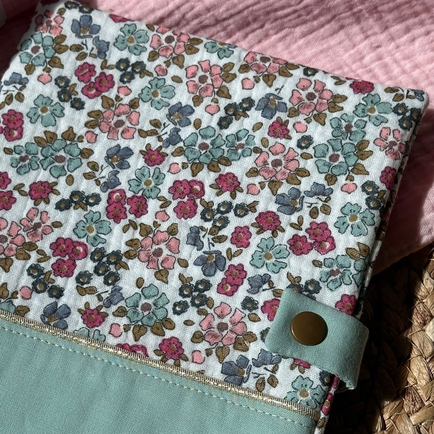 Découvrez ce charmant protège carnet de santé fleuri associé à un coton uni couleur menthe. Le passepoil doré entre les deux tissus ajoute une élégance supplémentaire à ce modèle. 🌸 La personnalisation (prénom, mot, date de naissance) sera effectuée avec un thermocollant textile du coloris de votre choix. Idéal comme cadeau de naissance, ce protège […]