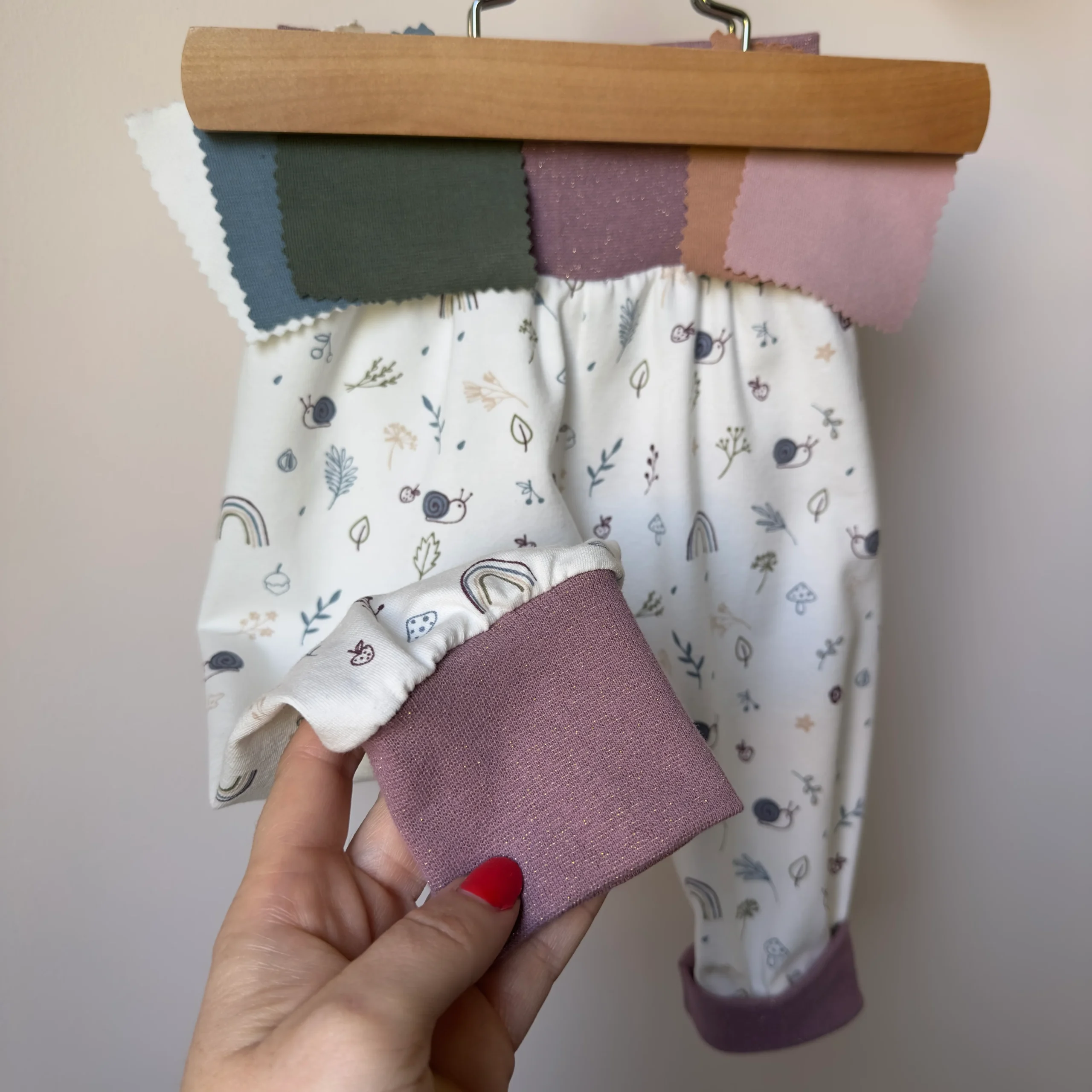 Douceur et poésie s’invitent dans la garde-robe de bébé avec ce joli motif d’escargots aux teintes mauve rosé sur fond blanc 🐌🌿